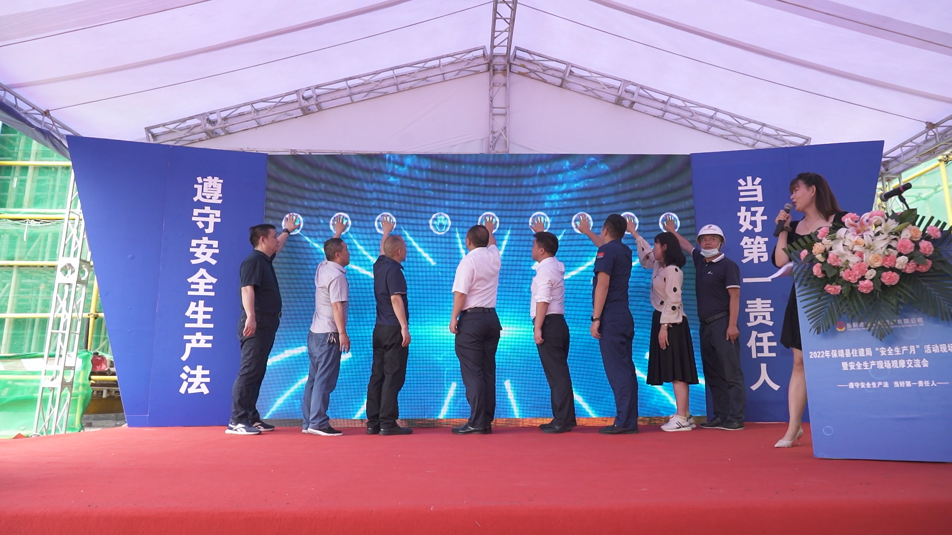今年6月是全國第21個“安全生產(chǎn)月”,為做好今年建筑施工安全生產(chǎn)各項(xiàng)工作,6月22日上午,由保靖縣住房和城鄉(xiāng)建設(shè)局主辦,岳陽建設(shè)工程集團(tuán)有限公司承辦的2022年保靖縣建筑施工應(yīng)急救援演練暨建筑工程質(zhì)量安全標(biāo)準(zhǔn)化施工現(xiàn)場觀摩會在保靖縣文化藝術(shù)中心項(xiàng)目召開。保靖縣副縣長彭建、保靖縣住房與城鄉(xiāng)建設(shè)局副局長徐杰、保靖縣應(yīng)急管理局副局長向婧華、保靖縣消防救援大隊(duì)大隊(duì)長許占坤、公司副總經(jīng)理?xiàng)钜愕阮I(lǐng)導(dǎo)出席活動。